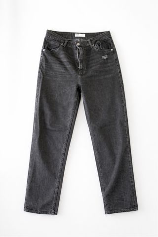 Pantalón vaquero de corte recto con bajo desflecado. - Cintura alta. - Cierre de cremallera y botón. - Bolsillos delanteros y traseros.