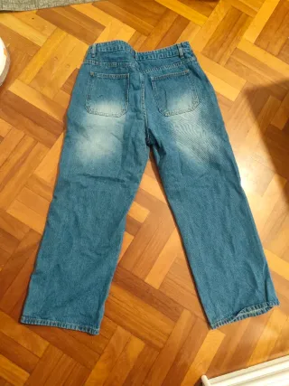 Pantalones vaqueros de corte ancho con cintura elástica. - Diseño moderno y cómodo. - Tejido vaquero resistente. - Cintura con fruncido. Tiene un pequeño agujero en un lateral
