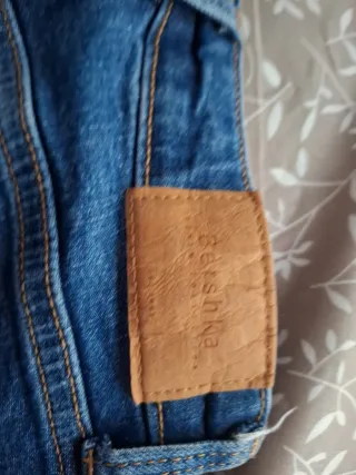 Pantalón vaquero de tiro alto. Detalles en los bolsillos. No se ha usado porque no acertamos con la talla.