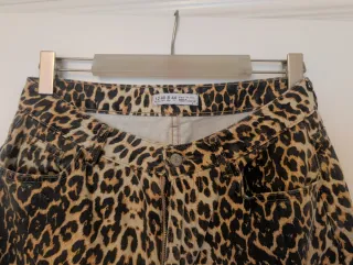 Pantalones vaqueros con un llamativo estampado de leopardo. - Diseño ajustado. - Cintura con cierre de botón y cremallera.