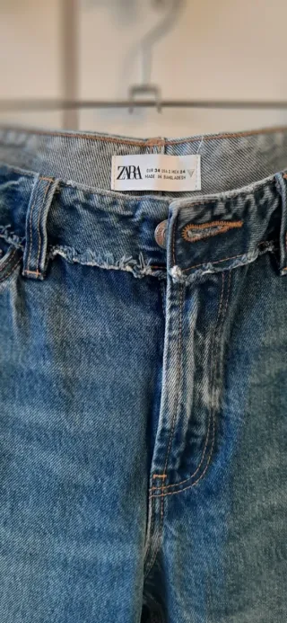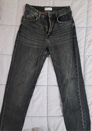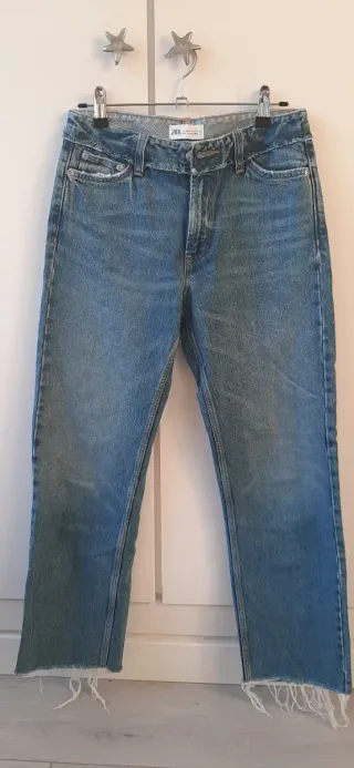 Pantalón tejano de mujer de la marca Zara. Un básico para tu armario. - Corte recto. - Lavado clásico.