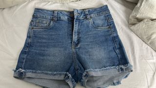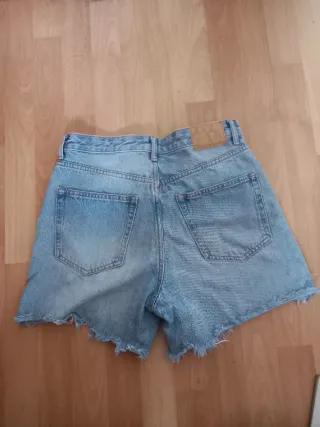 Pantalones cortos vaqueros de Pull&Bear. - Diseño desgastado en los bajos. - Tiro alto. - De largo llegan hasta un poco antes de la rodilla