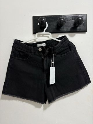Shorts vaqueros de color negro. Cintura alta, no son elásticos.