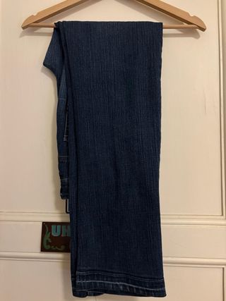 Pantalón vaquero de corte flare para mujer. - Diseño de cinco bolsillos. - Costuras en contraste. - Etiqueta de cuero en la parte trasera. Talla 26
