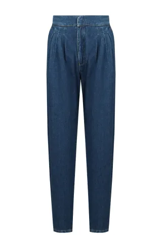 Pantalón vaquero de corte recto y talle alto. - Diseño con pinzas delanteras. - Cierre de cremallera y botón. - Tejido denim resistente.