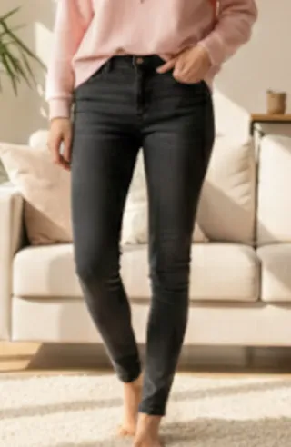 Pantalones vaqueros de corte ajustado, perfectos para el día a día. - Diseño de cinco bolsillos. - Cierre de cremallera y botón. - Tiro alto.