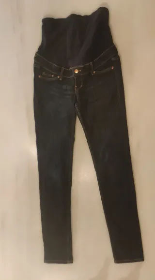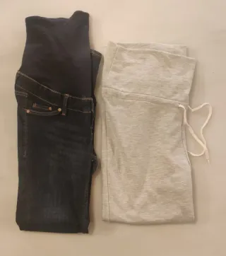 2 pantalones premamá, para el embarazo. Incluye unos vaqueros skinny high rib elásticos con cintura elástica alta y un pantalón de chándal gris de tejido suave con cordón ajustable. Los tejanos marcan una talla 38, pero al ser estrechos, valen mejor para la talla 36 / S. Muy cómodos y en buen estado. Marcas: Denim y Envie de fraise (Paris). Peso para envío: 753gr. Tags: maternidad, pantalon premama, prenatal, mama, postparto