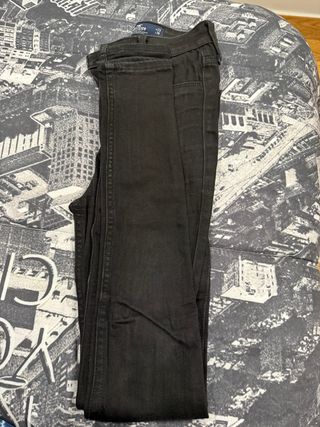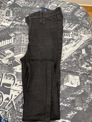 Pantalones vaqueros de la marca Hollister en color negro. Talla 32 - Corte ajustado. - Tejido denim. - Cierre de cremallera y botón.