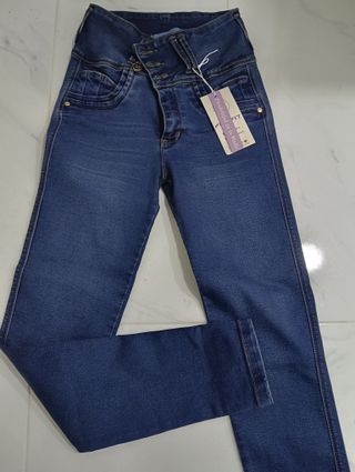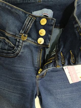 Pantalones tejanos de estilo colombiano. - Tiro alto. - Cierre con botones. - Bolsillos delanteros y traseros. - Diseño ajustado.
