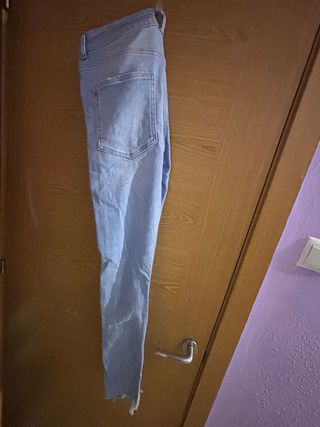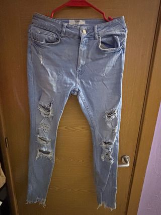 Pantalones vaqueros de Zara en un tono azul claro. Son cómodos y versátiles. - Diseño de cinco bolsillos. - Cierre de cremallera y botón. - Corte moderno.