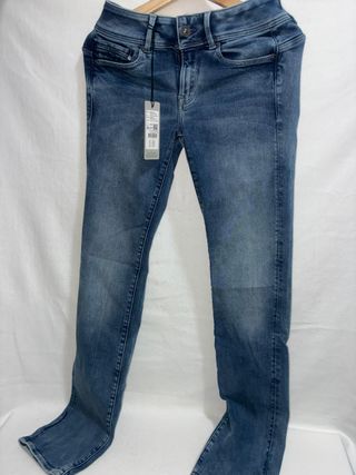 Pantalón vaquero de corte moderno. - Diseño desgastado. - Cintura alta. - Cierre de cremallera y botón. Talla 34
