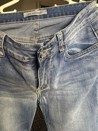 Pantalón tejano de la marca DS Fashion con un estilo moderno y desgastado. - Diseño con rotos en las rodillas. - Acabado deshilachado en los bajos. - Tiro medio.