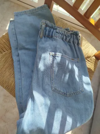 Pantalones vaqueros de la marca Zara. - Cintura elástica con detalle fruncido. - Bolsillos traseros. - Estilo relajado.