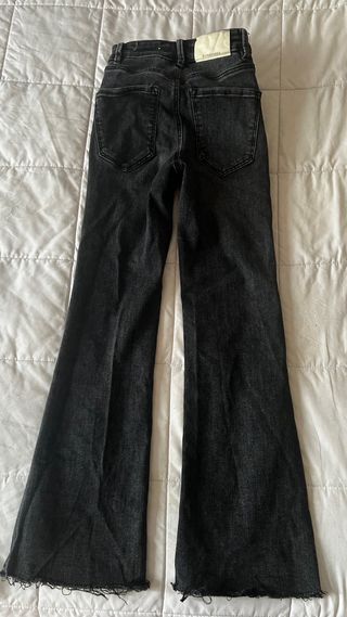 Pantalón vaquero de Zara en color negro. Corte acampanado. - Cintura media. - Bolsillos delanteros y traseros. - Cierre con cremallera y botón.