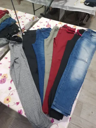 Pantalones en buen estado. - 8 pantalones de diferentes colores, estilos y marcas - Ideales para cualquier ocasión. Todos entre talla 40-42 aunque las 42 son pequeñas. El vaquero es pirata.