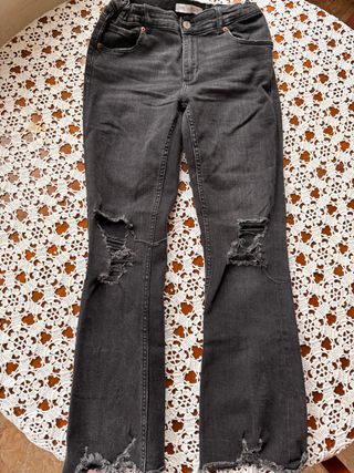 Pantalón vaquero de Zara con un moderno diseño desgastado y rotos. - Corte acampanado. - Cintura elástica. - Bajo deshilachado.
