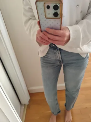 Pantalón vaquero de talla S, en perfecto estado. - Estilo desgastado. - Cierre de cremallera y botón.