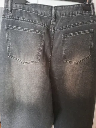 Pantalón negro esta como nuevo, lo que esta arrugadito de estar guardado solo puesto una vez. De las rodillas son rotos que lo tiene el pantalón. Es elástico y cómodo. Cede al cuerpo bien.