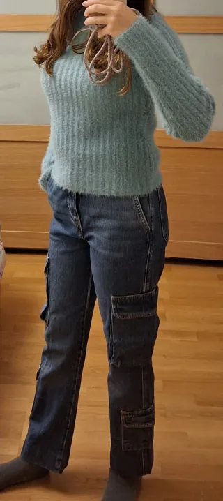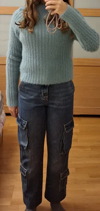 Conjunto de jersey Mango, talla S y pantalón cargo Stradivarius talla 32 - Jersey de punto suave. - Pantalón vaquero con bolsillos cargo. SOLO ENVÍOS