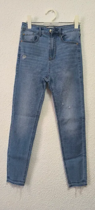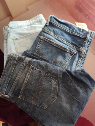 Se vende lote de 3 pantalones vaqueros: - Dos de Stradivarius, uno de talla 38 y otro de talla 36. - Uno de Lefties, talla 38. Están en muy buen estado. Se venden a 6€ los tres juntos.