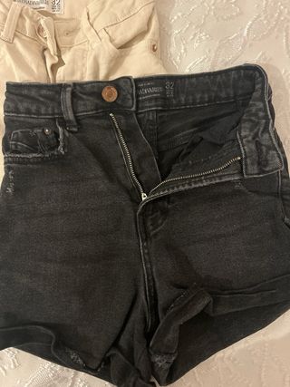 Lote de dos vaqueros cortos. - Unos en color beige. - Otros en color negro.