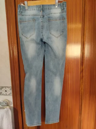 Pantalón vaquero de estilo campana con un lavado desgastado., pone talla 38 , vale para una. 38 y 40, bastante elastico y el tiro llega un pelín por debajo del ombligo,,son bastante comodos - Diseño de pierna ancha. - Bolsillo trasero con detalle de pedrería.