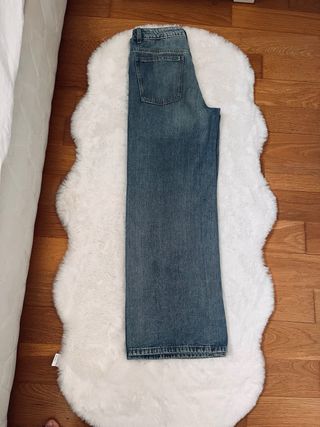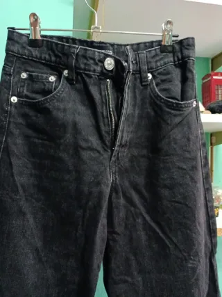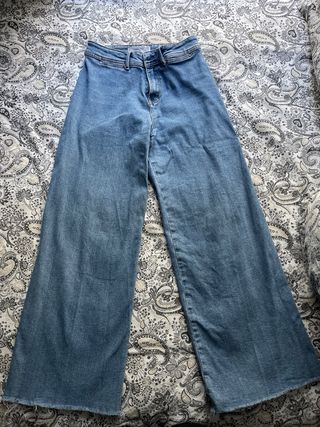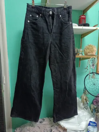 Pantalón vaquero de corte ancho y cintura alta. - Diseño camal ancho. - Cierre de cremallera y botón. El tallaje es un poco más grande, más cercano a 36