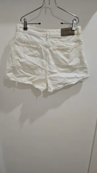 Vaquero corto de tiro medio con un diseño moderno y desgastado. - Cintura con trabillas para cinturón. - Bolsillos delanteros y traseros. - Cierre de cremallera y botón. - Dobladillo deshilachado. SI TE LLEVAS CUATRO PRENDAS DE ROPA DE MI PERFIL TE LLEVAS UNA DE REGALO (la de menor precio) 4 X 3