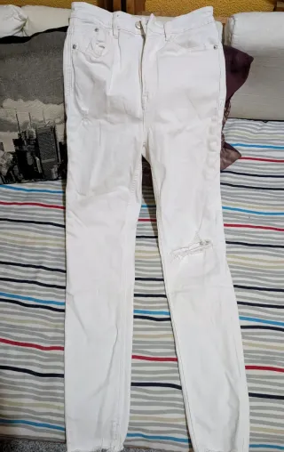 Pantalón skinny de tiro alto en color blanco, Stradivarius. Usado 1 vez.