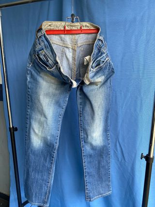 • Pantalones vaqueros de la marca Rock & Republic en color azul. 12€. Los 2 x 20€ - Diseño con adornos en los bolsillos traseros. - Corte recto. • Pantalón Fornarina 15€ - Color azul - Corte recto - Adorno en bolsillos traseros - Detalle de etiqueta de cuero en la parte trasera