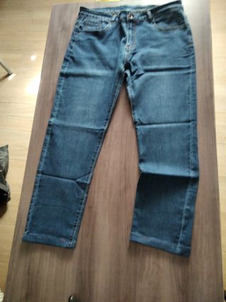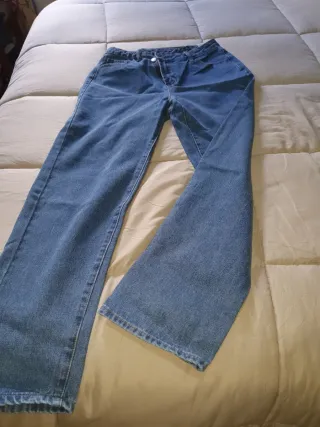 Pantalones vaqueros de color azul. Son de tiro medio y corte recto. Se encuentran en buen estado. - Tejido resistente. - Diseño clásico. - Muy poco uso. Están como nuevos. - De cintura mide 42 cm.