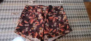 Shorts vaqueros con un estampado floral vibrante y llamativo. Perfectos para un look casual y fresco. - Diseño de tiro alto. - Cintura con trabillas para cinturón. - Cierre de cremallera y botón. - Bolsillos delanteros y traseros.