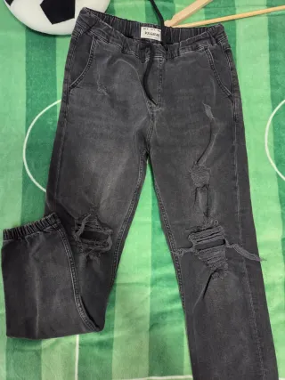 Pantalón vaquero con un diseño moderno y desgastado. - Cintura elástica con cordón. - Efecto desgastado y rotos. - Puños ajustados.