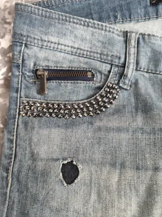 Short vaquero talla 36 marca Springfield. Detalle de abalorios en la parte delantera del pantalón. Está sin etiqueta pero nunca lo he puesto, está sin estrenar. Posibilidad de venta en persona.