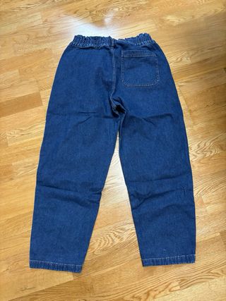 Pantalón vaquero de corte ancho y estilo moderno. - Cintura elástica con cierre de botón. - Bolsillos laterales. - Piernas amplias y rectas.