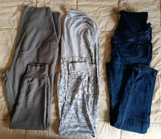 Pantalones premamá cómodos y versátiles. - Diseño con cintura alta para mayor soporte. - Tejido suave y elástico. 1 vaquero 1 chándal 1 pijama
