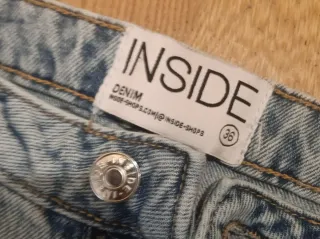 Pantalón vaquero mujer de corte ancho de la marca Inside. - Estilo ancho. - Tejido vaquero. -tiene esos detalles q parecen manchas