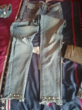 Pantalón vaquero pitillo. 5 € cada uno o 3 por 10 €. Ver más en mi perfil. - Estilo pitillo. - Parches decorativos. - Efecto desgastado y roto.