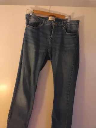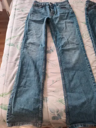 Pantalón vaquero de corte acampanado. - Diseño de bolsillos. - Cierre de cremallera y botón. Poco uso, vendo porque me queda muy grande ya al haber adelgazado. Mido 1,70