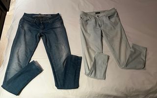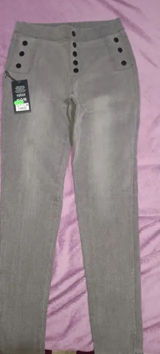 Pantalón vaquero color gris para mujer y pantalón Lycra gris oscuro de brillo. (Precio por los 2) - Diseño de corte ajustado. - Bolsillos traseros. - Cintura elástica.