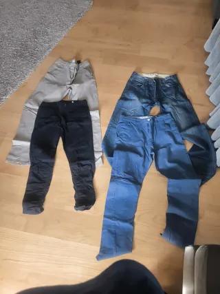 Conjunto de pantalones de diferentes colores. - Pantalón beige chino - Pantalón negro jogger - Pantalón azulchino - pantalones vaqueros estilo desgaste Muy muy poco uso . El beige y negro sin usar