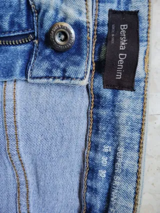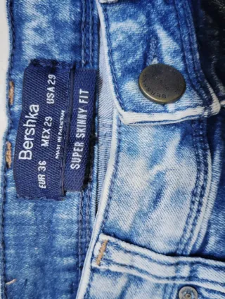 Pantalón vaquero de Bershka con un corte super skinny fit. - Talla EUR 36 / MEX 29 / USA 29. - Fabricado en Pakistán. - Diseño con efecto desgastado.
