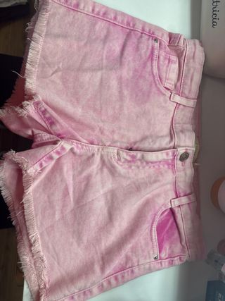 Shorts vaqueros de Sfera en color rosa con un diseño moderno y juvenil. Perfectos para un look casual. - Tiro bajo. - Bajo deshilachado.