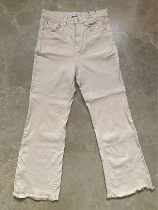 Pantalones vaqueros de Stradivarius Beige - Tejido elástico - Corte acampanado. - Bajo deshilachado. - Tiro alto.