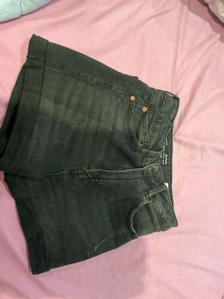 Pantalón vaquero corto de color negro. Un básico para cualquier armario. - Diseño con vuelta en el bajo. - Bolsillos delanteros y traseros. - Detalle de rotura en uno de los bajos.