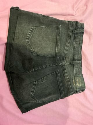Pantalones cortos vaqueros de color negro. - Cintura alta. - Cierre de cremallera y botón. - Bolsillos delanteros y traseros.