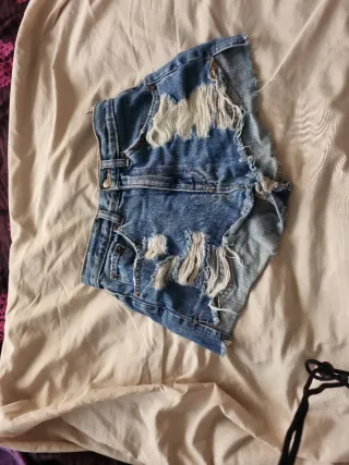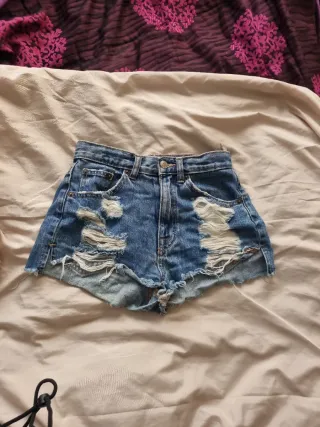 Pantalón corto vaquero con un diseño moderno y desgastado. - Estilo shorts. - Acabado con rotos y deshilachados. - Cintura alta.