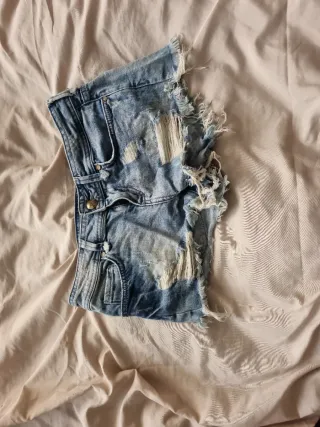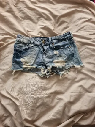 Shorts vaqueros con un diseño moderno y desgastado. - Estilo desgarrado. - Acabado deshilachado en el bajo.