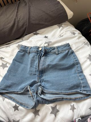 Pantalones cortos vaqueros de corte alto. - Tejido vaquero. - Cintura alta. - Cierre de cremallera y botón.