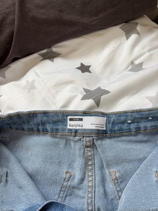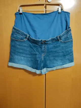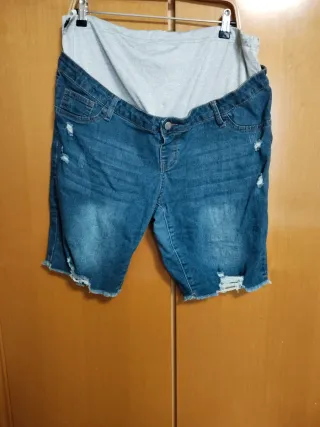 Pantalón vaquero diseñado para premamá. Cómodo y con un estilo moderno. - Cintura elástica alta para mayor confort. - Largo tipo bermuda con vuelta en el bajo. - Marca shein , talla XL. Cintura 40cm
